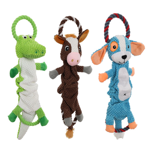 Cowboy Pals Plush Squeaky Crinkle Rope Dog Toy