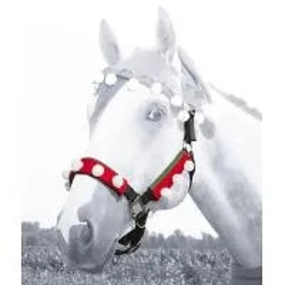 This 3 pc halter/bridle set lets your horse be festive for the holidays! Red and green felt and white pompoms make this set stand out! Great for parades, clubs, pony rides, costume classes and Christmas photos. “Quick grip” fasteners for easy application.