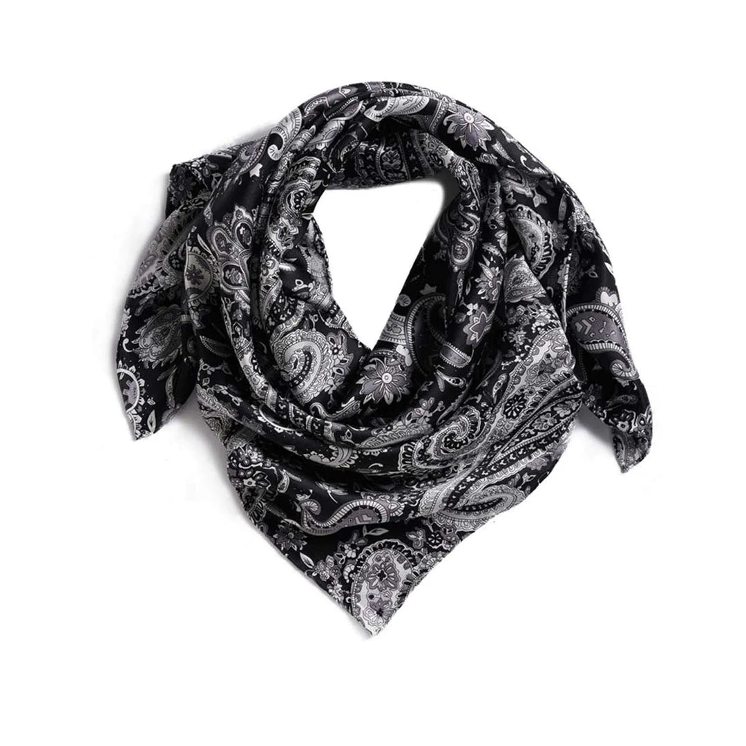 33" x 33" Black silver Paisley Wild Rag