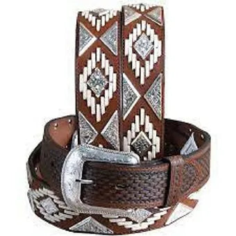 3D Belt Co. Leather Fashion Cowboy Belt w/ Silver Diamond Conchos