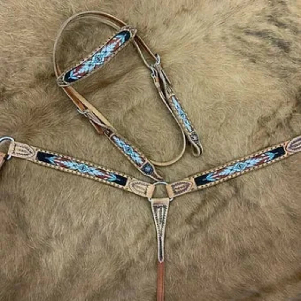 Beaded Browband Headstall & Breast Collar Set w/ Rawhide Leather Accents