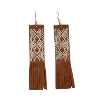 Blazin Roxx Brown Fringe Earrings w/ White Aztec design