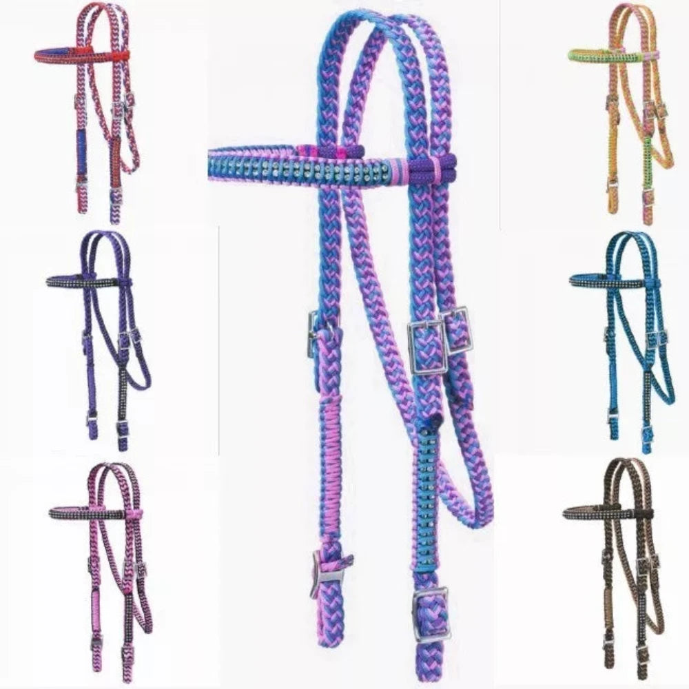 Braided Nylon Horse Headstall w/ Crystals, Color choice