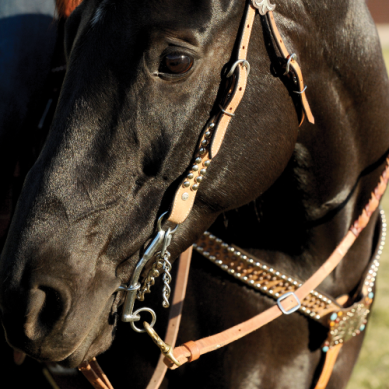The CG bit is one of the first bits Carol Goosetree designed. She developed this bit especially for her champion mount "Dobre", in the late seventies. The chain snaffle mouthpiece and short gag action makes this bit soft and forgiving in a horse's mouth. Horses tend to feel comfortable in this bit and show a lot of response without overreacting. It helps add control in the turns, and support and correct an overly bendy horse. The CG's weighted shanks add more feel and help encourage a proper headset