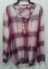 Cumberland Outfitters Women's Pink, Gray, and White Plaid Lace Up Shirt