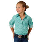 Roper Youth Girls Turquoise & White Floral Print Long-Sleeve Western Shirt.