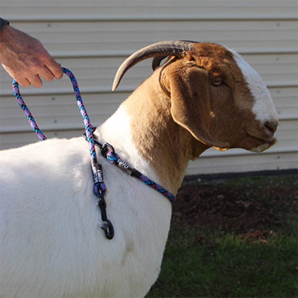 The Sullivan’s Goat Neck Tie can be used for both lambs and goats to easily secure them to any wash rack or pen. It is redesigned for the comfort and safety of your animal with smooth sliding rings for adjusting, minimizing the discomfort, and durable interlocking o-rings to keep your adjustments in place. Like the Sullivan’s Snap Lead Halter, the Goat Neck Tie has Polyolefin covered bindings to help prevent irritation to the animal. This neck tie is not intended to be used as a halter and should be used safely and accordingly.