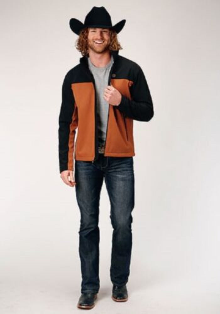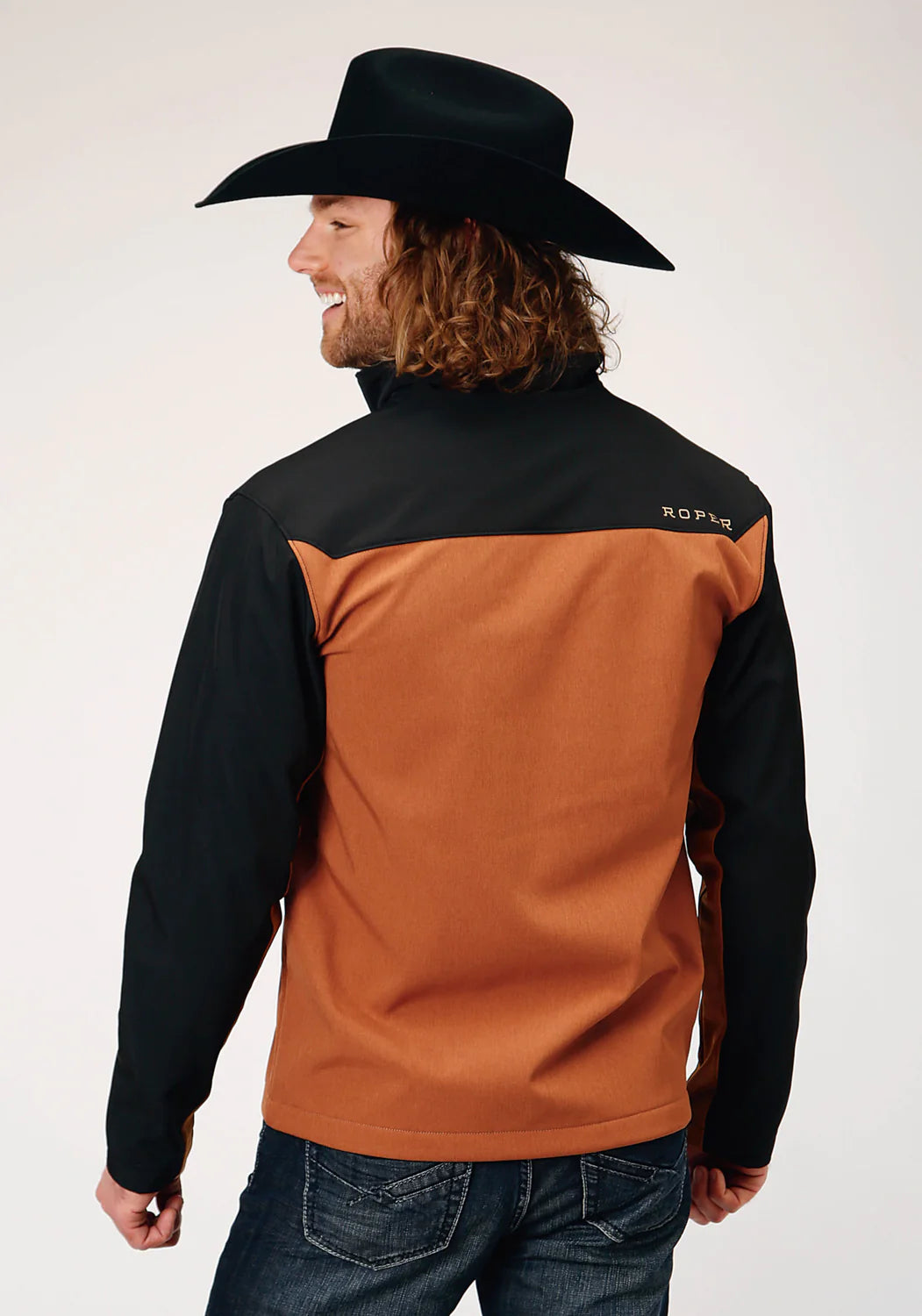 Men's Technical Outerwear * Pieced Soft Shell Jacket * Lightweight Wind & Water Resistant Warmth * 3 Zippered Pockets * Caramel Colored Corded Zipper Pulls * Black Bonded Fleece Lining * Screen Printed Logos