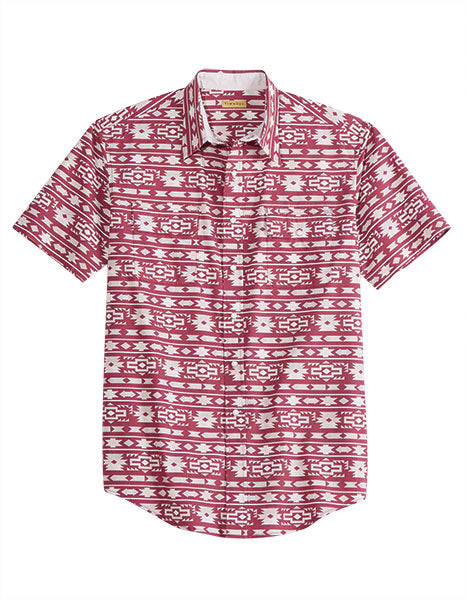 This expertly crafted Guy's S/S Shirt boasts a striking horizontal Aztec print on soft cotton poplin. With a straight back yoke, square pockets and flaps, and a solid poplin interior trim, this shirt exudes both style and functionality. The garment washed finish and opaque snap front add a touch of sophistication, while the metal logo tag completes the look.