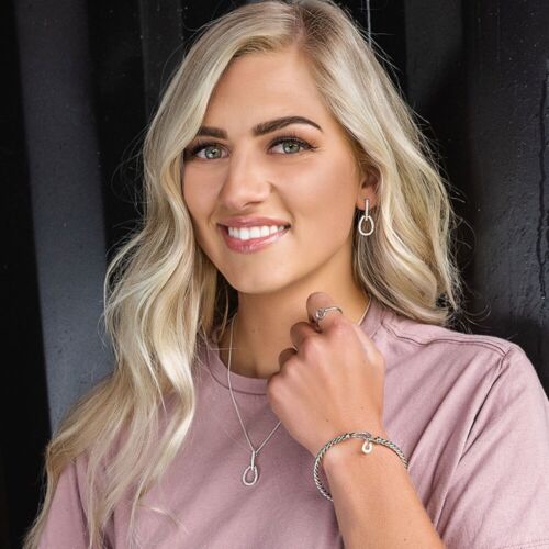 A shimmering, silver tone is glittered with clear stones in our "Glittering Tapadero" earrings, where a straight line leads down into a teardrop loop, reminiscent of a horseshoe design. These earrings add a dash of style and grace to any outfit. Earrings have hypoallergenic stainless steel post backs.