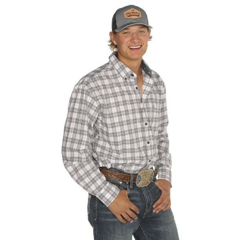 Noble Outfitters Men's Gray White PLAID WESTERN SHIRT