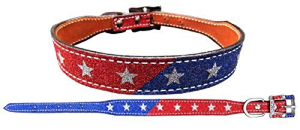 Showman Couture Red & Blue Glitter w/ Stars Leather Dog Collar
