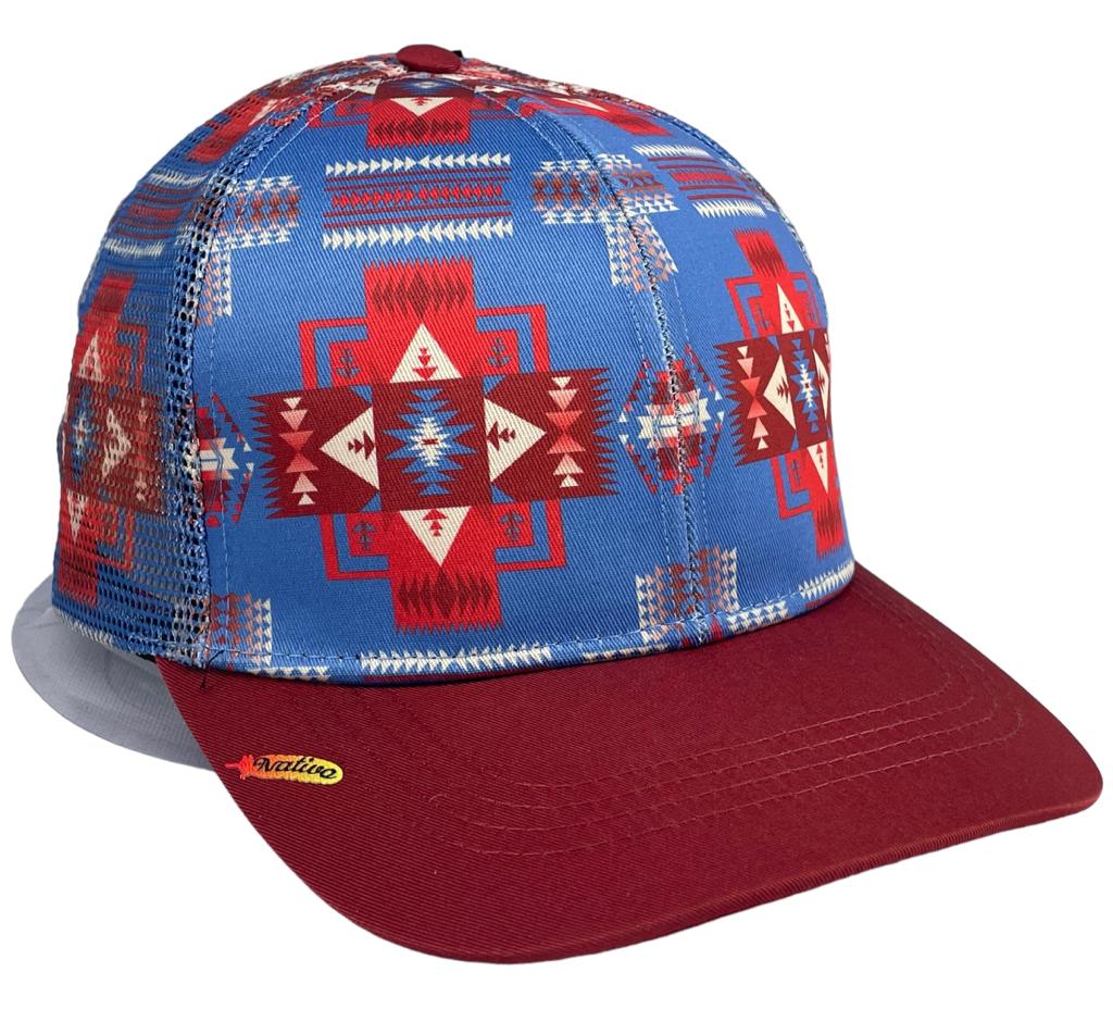 Nativo Red Blue Aztec Design Hat w/ Mesh back