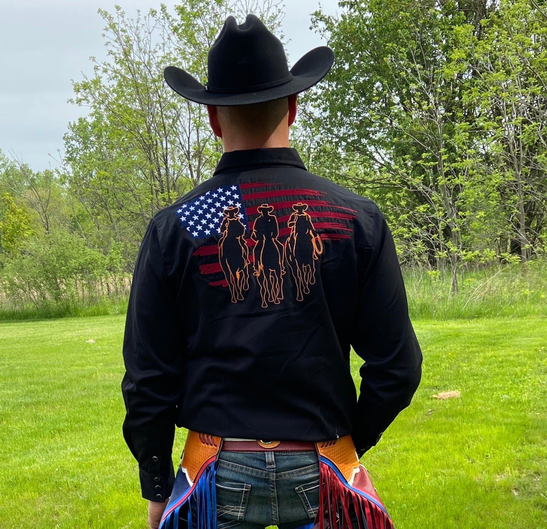 Men's Roper Black Old West Scene USA Flag Embroidery Western Shirt