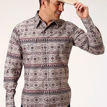 Men's Roper Horizontal Aztec Print Western Shirt w/ Snaps