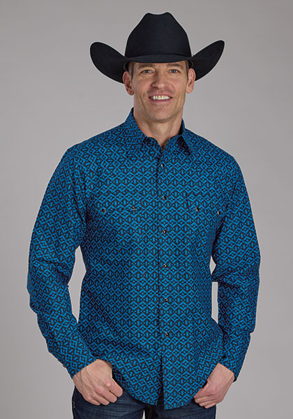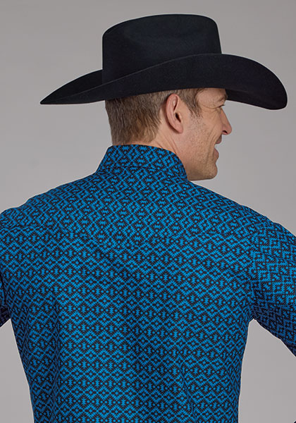 Roper Men's Blue Print Aztec Tile Western Shirt