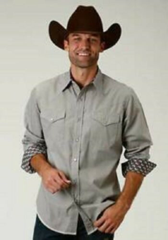 Roper Men's Gray Solid Poplin Paisley Cuffs Snap Up Western Shirt