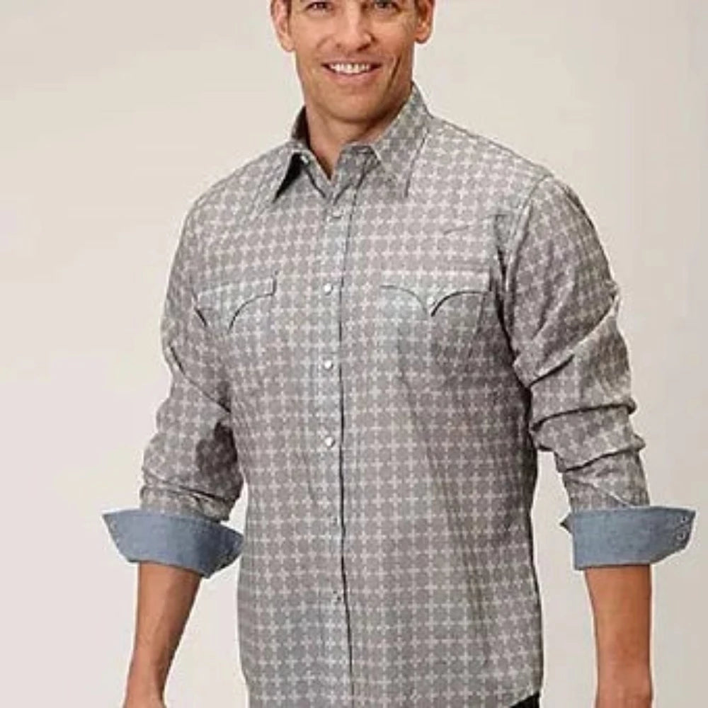Roper Men's Gray Tribal Diamond Print Long Sleeve Snap Up Western Shirt