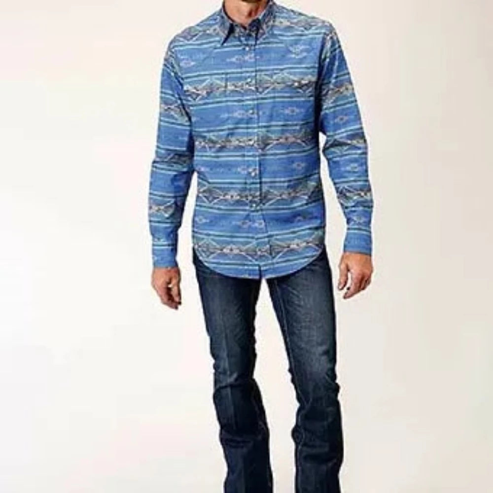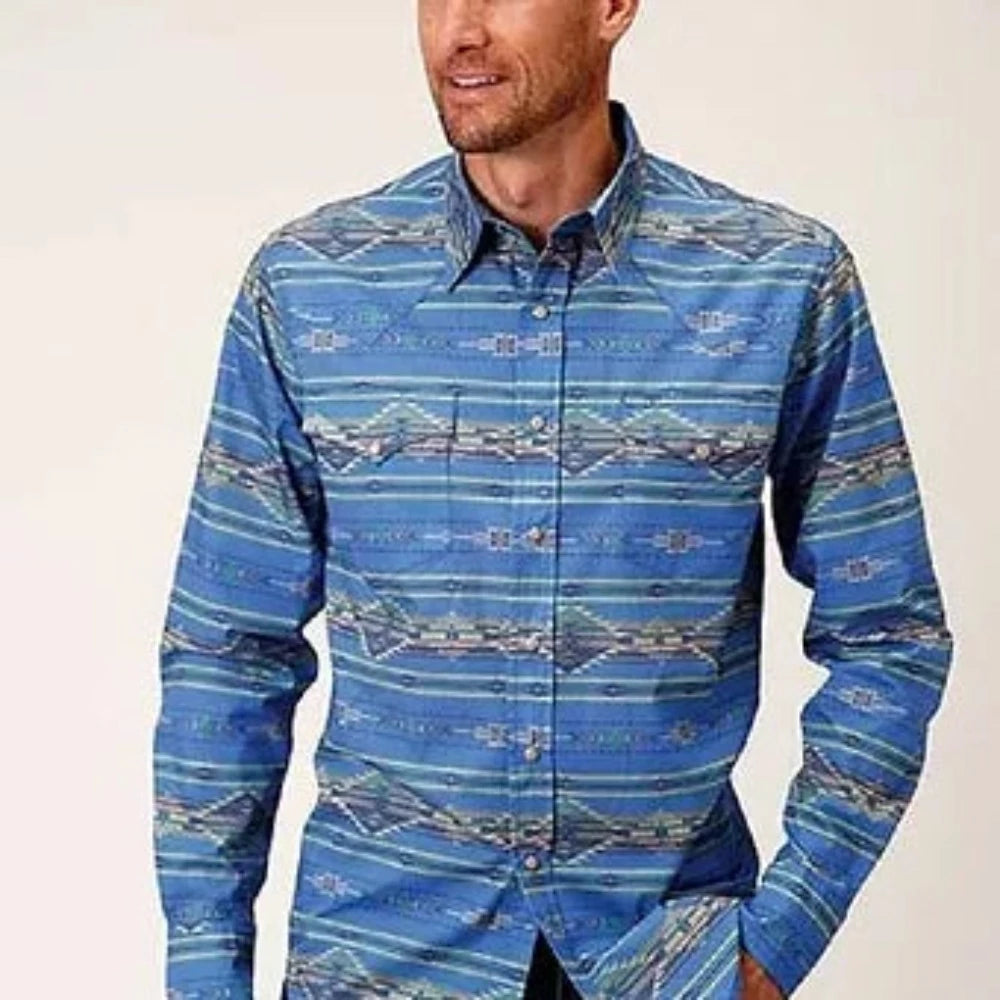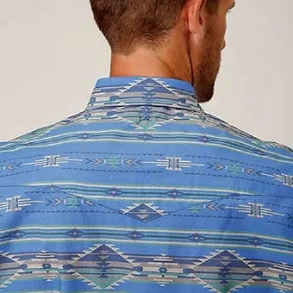 Men's Roper Blue Tan Aztec Print Western Shirt