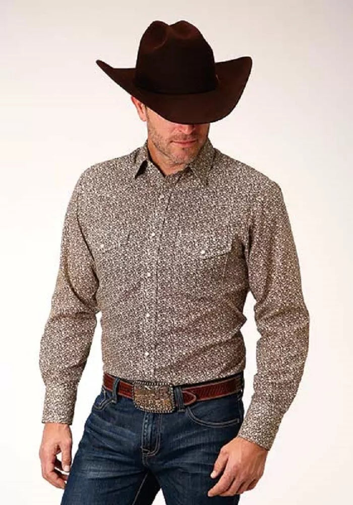 Roper Men's Long-sleeve BROWN & CREAM FLORAL WESTERN SHIRT