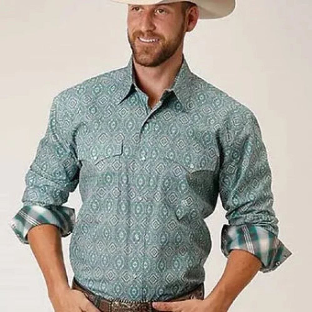 Roper Men's Long-Sleeve Jade Paisley Pearl Snap Up Western Shirt