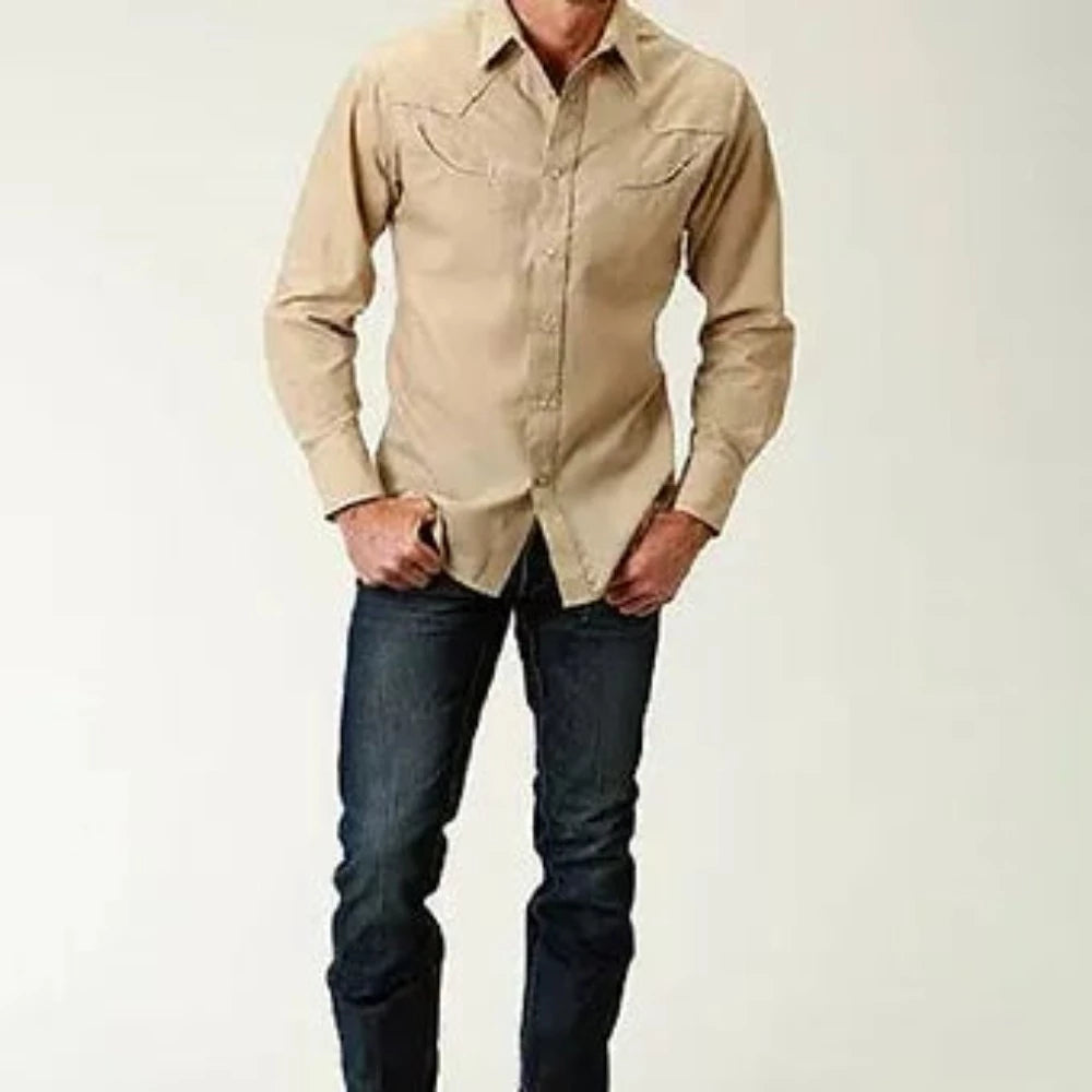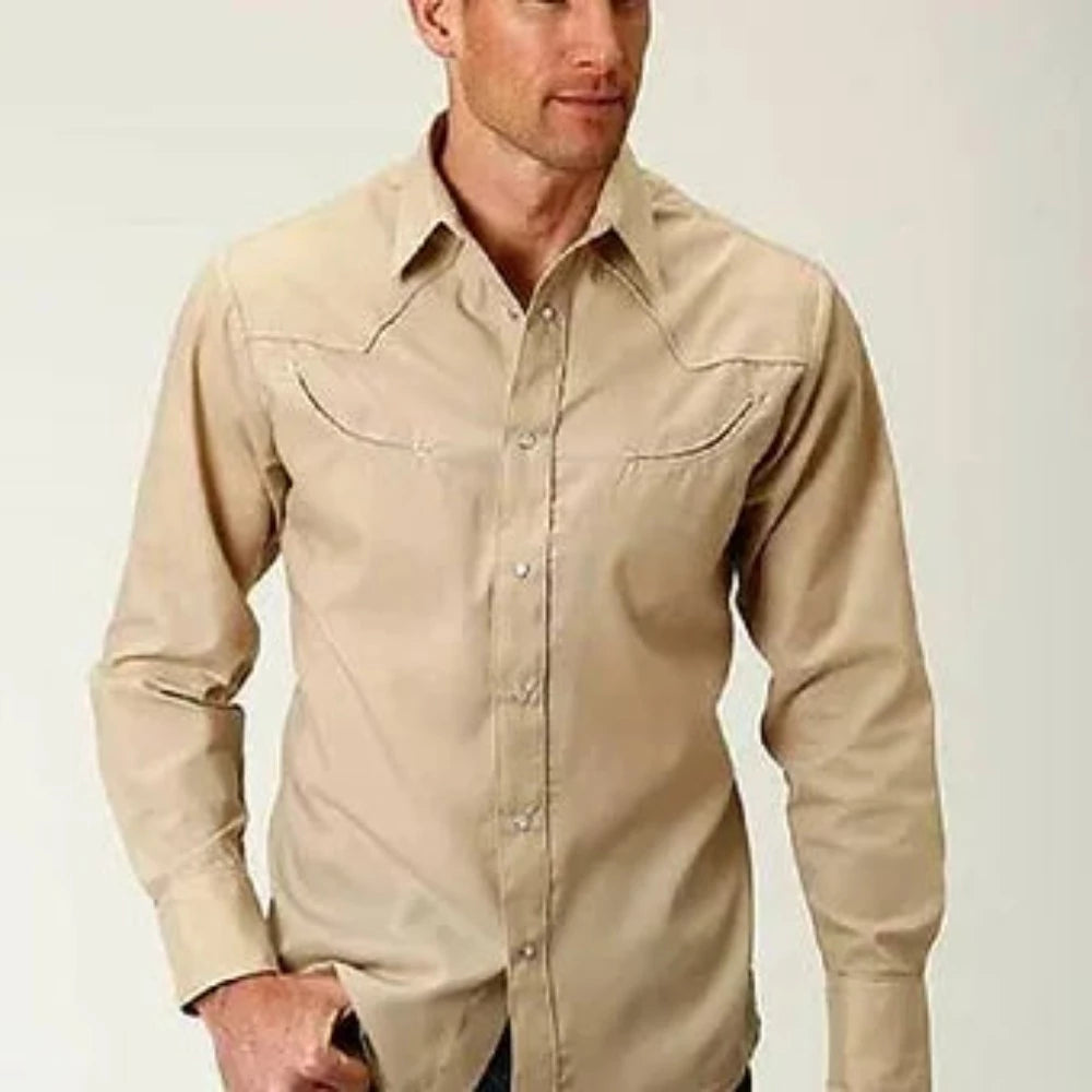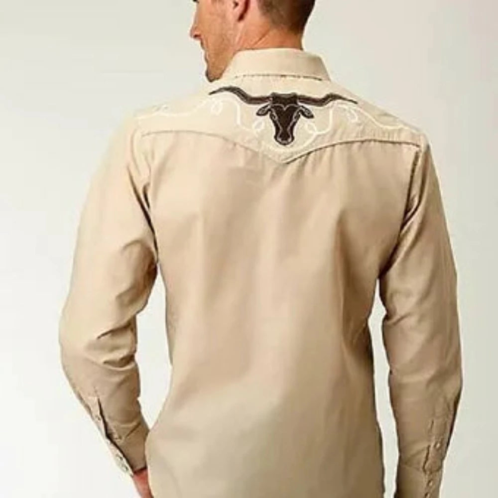 Roper Men's Stone Tan Broadcloth Longhorn Steer Western Shirt
