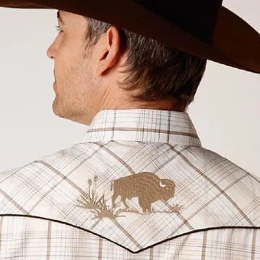 Roper Men's Tan Cream Buffalo Embroidered Western Shirt
