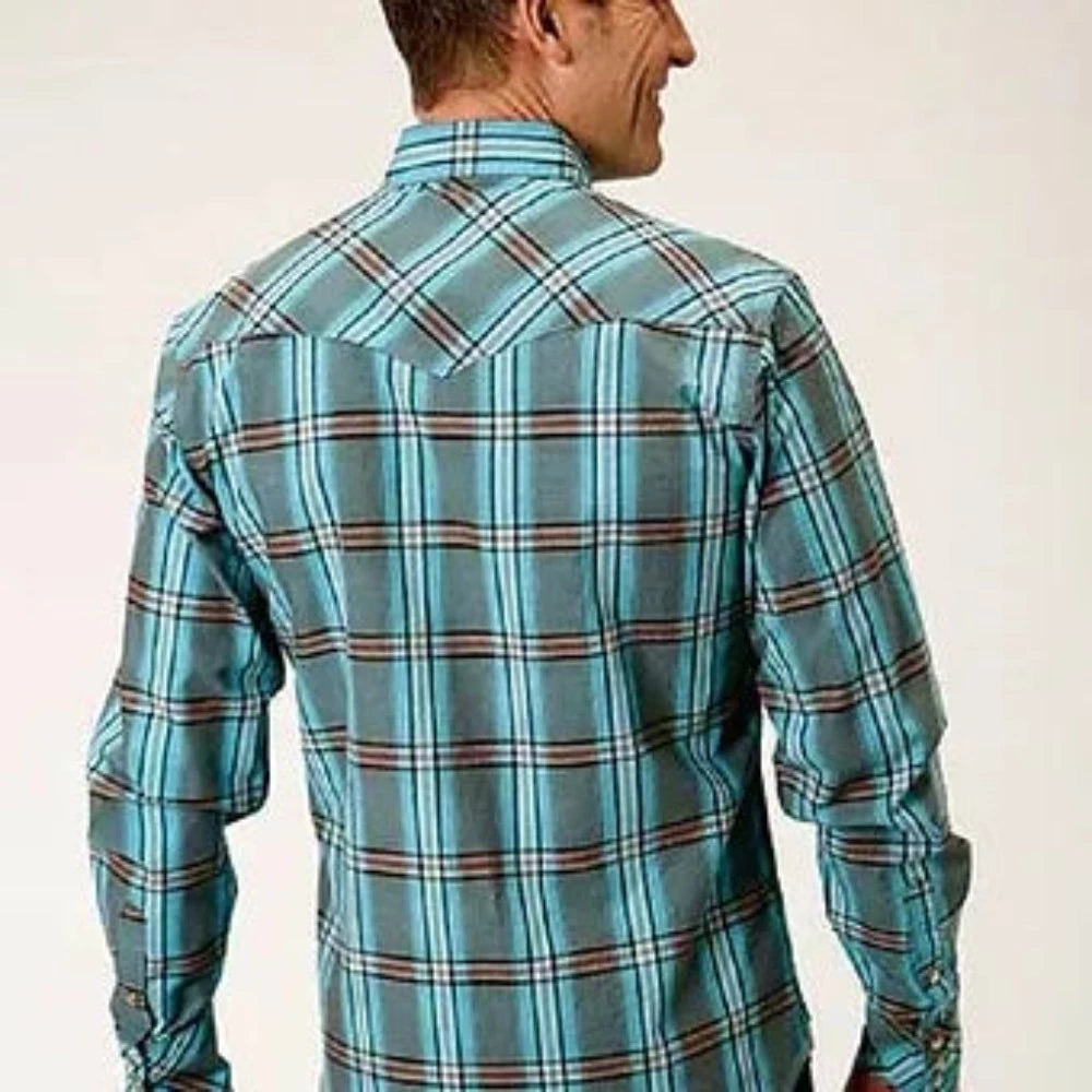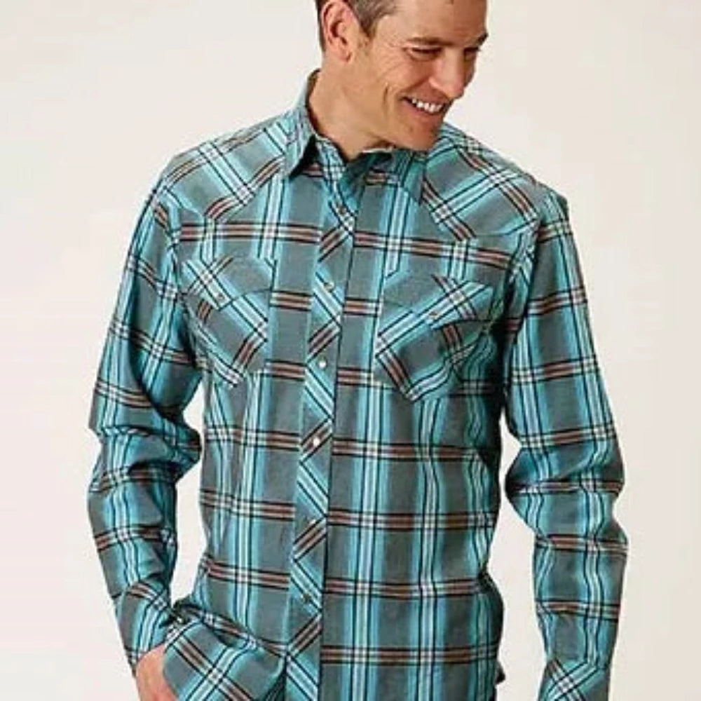 Roper Men's Turquoise Plaid Dobby Long Sleeve Snap Up Western Shirt