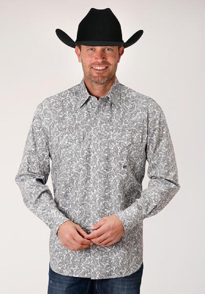 Roper Men's White & Black Line Paisley Snap Up Western Shirt