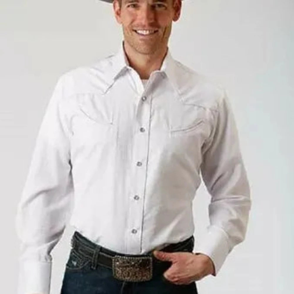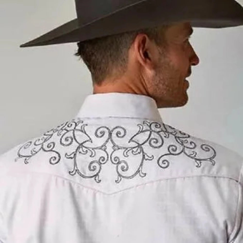 Roper Mens White Tone on Tone Dobby Western Shirt w/ Embroidery