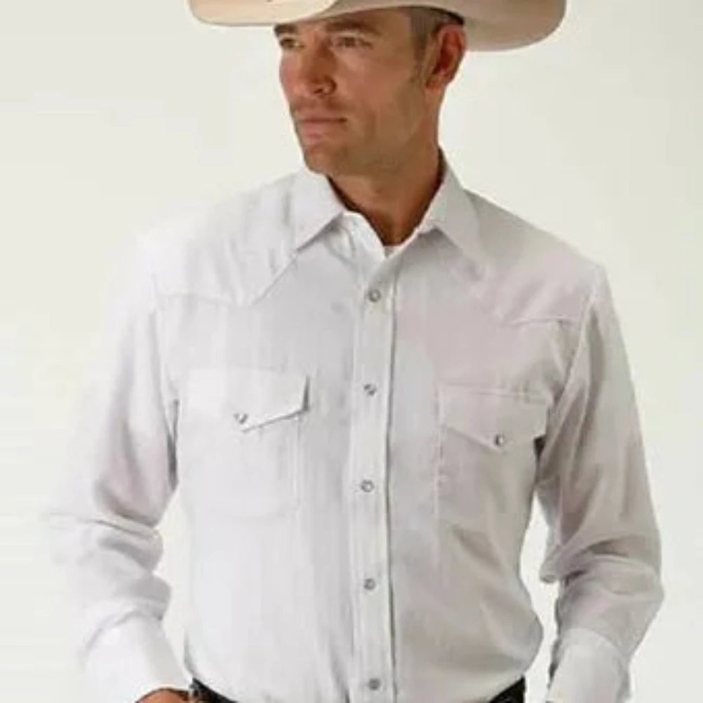 Roper Men's White Tone on Tone Stripe Snap Up Western Shirt
