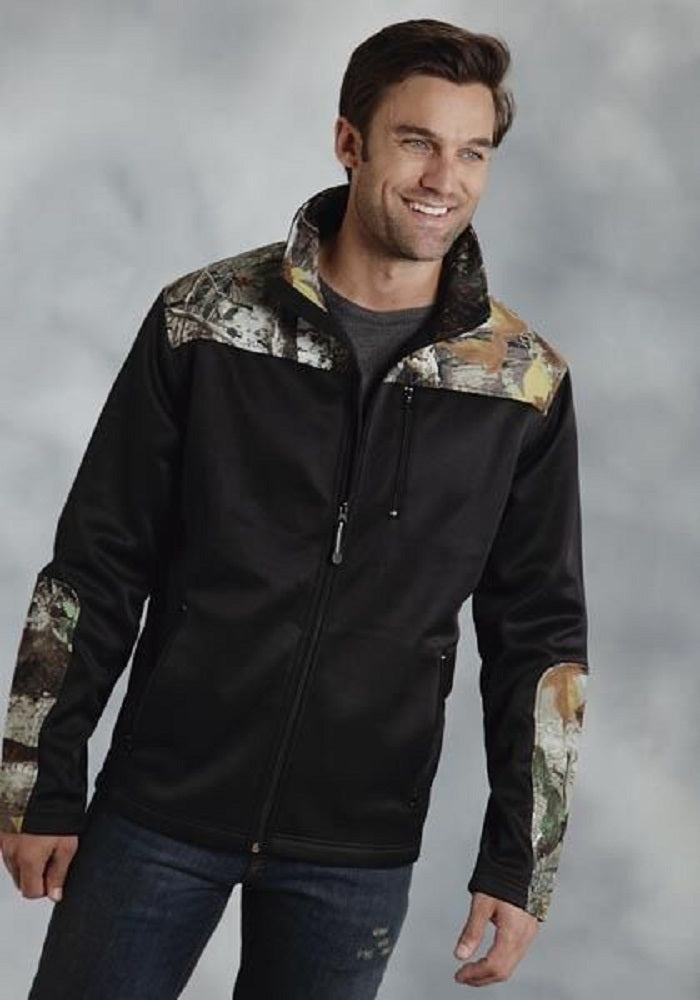 Men's Roper Black Front Zip Jacket with Camo / Camouflage.