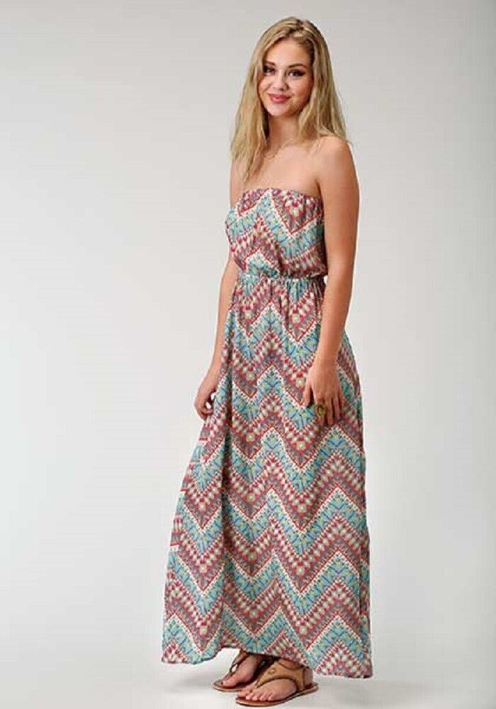 Roper's Women's Aztec Chevron Print Rayon Dress w/ Elastic Bustline.