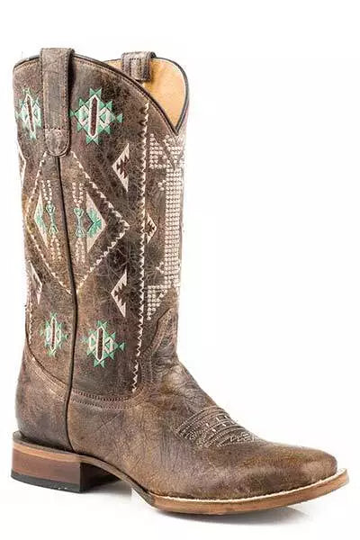 Roper Women's Brown 'OUT WEST' WESTERN COWBOY BOOTS Aztec Embroidery