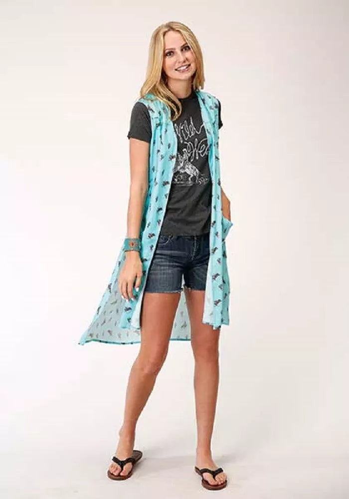 * Women's Cactus Cowboys Printed Rayon Sleeveless Cardigan