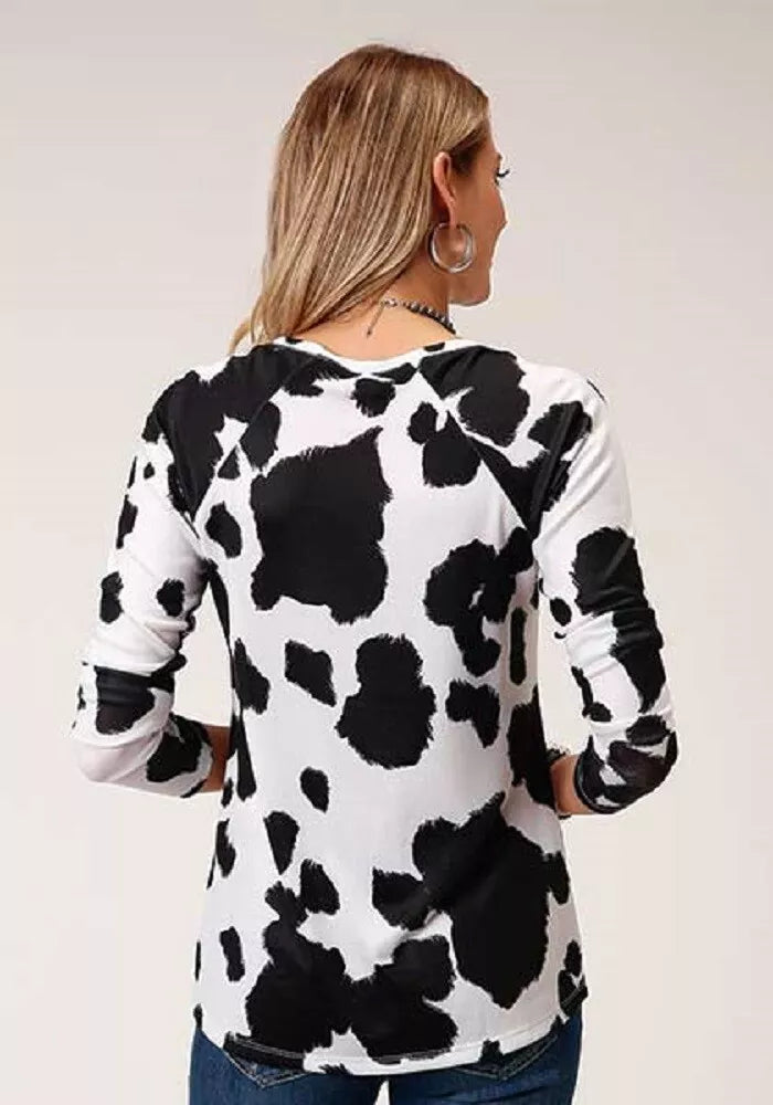 Roper Women's White & black COW PRINT V-NECK SHIRT SWEATER JERSEY