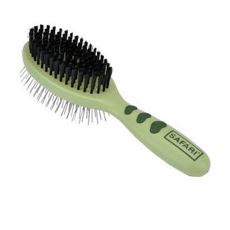 Features the benefits of both wire pins to lift out loose hair and debris, and bristles to distribute dog's natural oils throughout the coat. Ideal for households with multiples pets. Pin side can also be used to fluff the coat by brushing against the direction of hair growth.