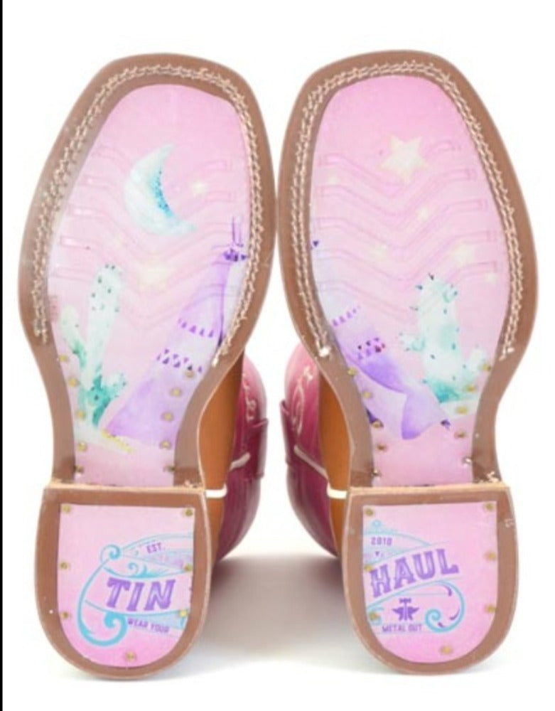 Step out in style with Tin Haul Girl's "All Points West". These handcrafted boots feature a square toe, burnish pink shaft, and a growth spurt insole for ultimate comfort. With an all leather lining and transparent obvious sole, you'll be showing off your playful side with every step. Yeehaw!