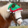 Get your mini horse into the holiday spirit with this jolly elf hat! Perfect for parades or holiday photos, this hat is made of quality green felt with red triangular tassels and white poms. The 2-ear design is easily secured onto a halter or bridle with 2 “Quick Grip” closures.