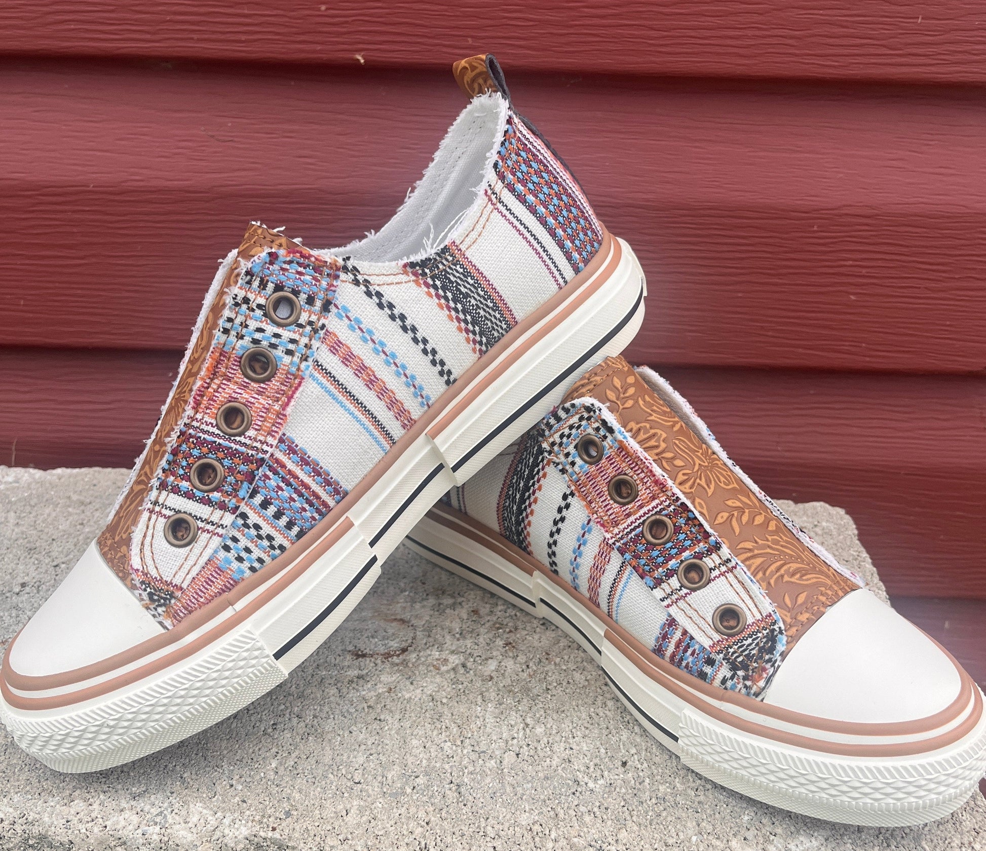 This Very G 'BOHEMIAN' Casual Ladies Shoe is the perfect combination of style and comfort. It features a fabric casual shoe with faux tooled leather on the tongue, providing a sophisticated flair. The shoe is breathable and lightweight, ensuring a comfortable fit. Perfect for both formal and casual occasions.