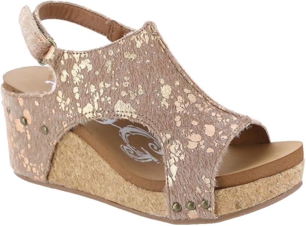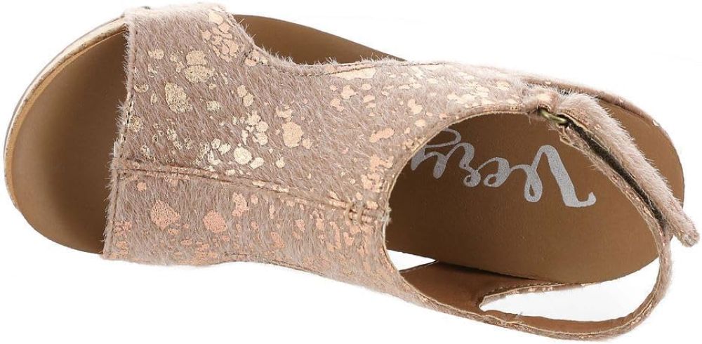 Introducing the Very G Harper Wedge Sandal in Rose Gold. With a comfortable yet stylish design, these sandals are perfect for all-day wear. The metallic finish adds a touch of elegance, while the wedge heel provides support for your feet. Elevate any outfit with these chic and versatile sandals.