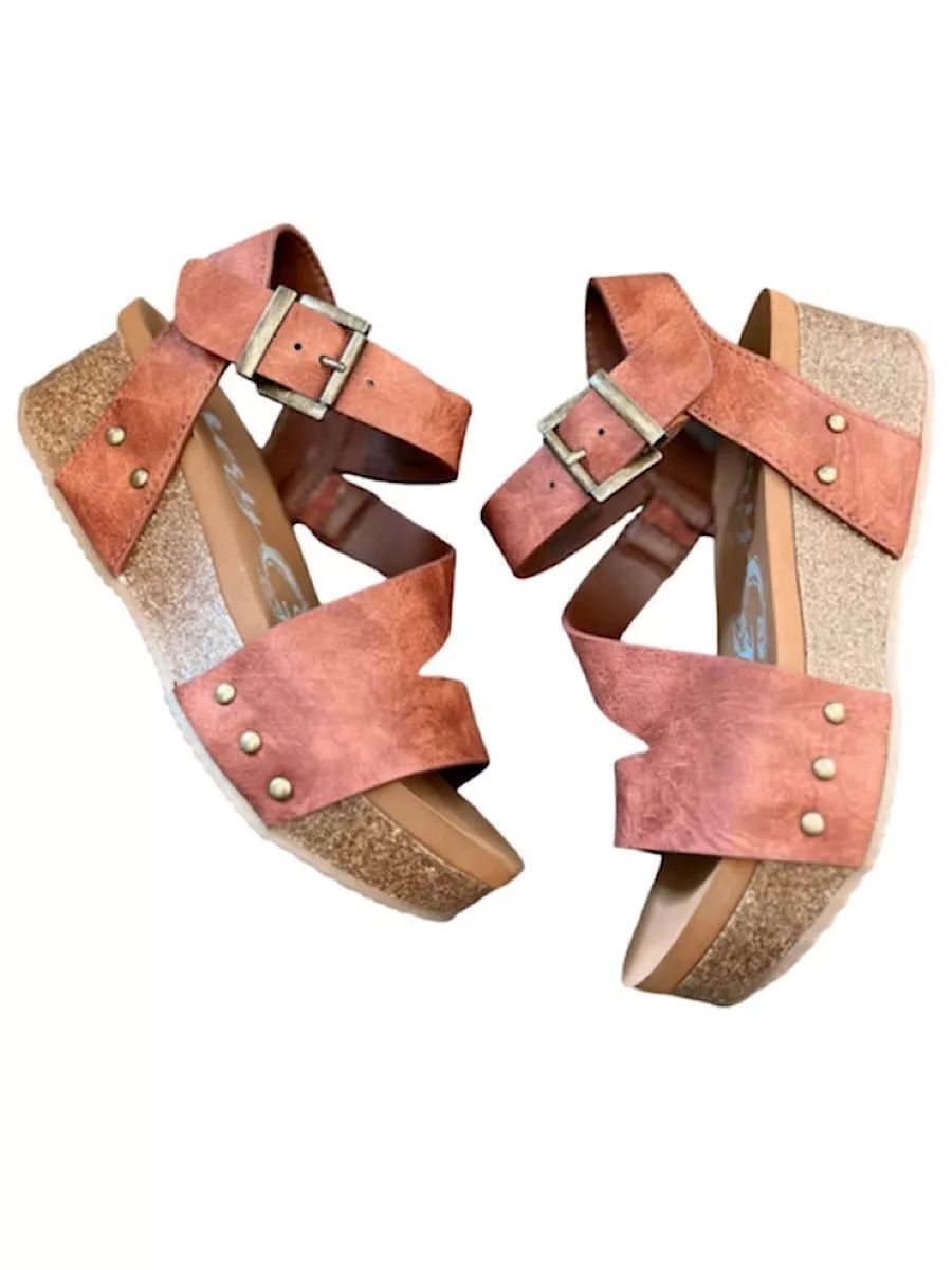 Expertly crafted and designed for comfort, the Very G Shayne Rust Wedge Sandal features a cushioned footbed and adjustable ankle strap with buckle for a perfect fit. Open-toe design and 2" wedge height add style and versatility. Perfect for any occasion.